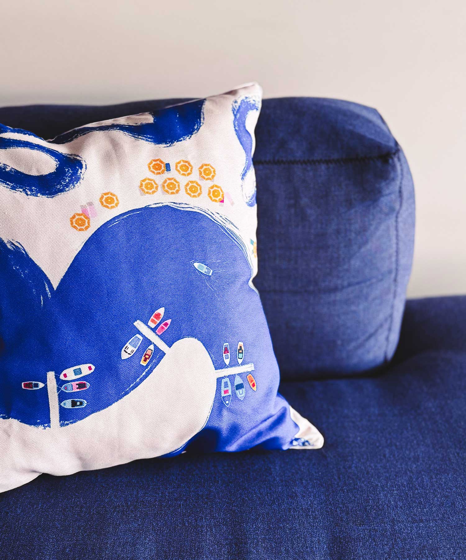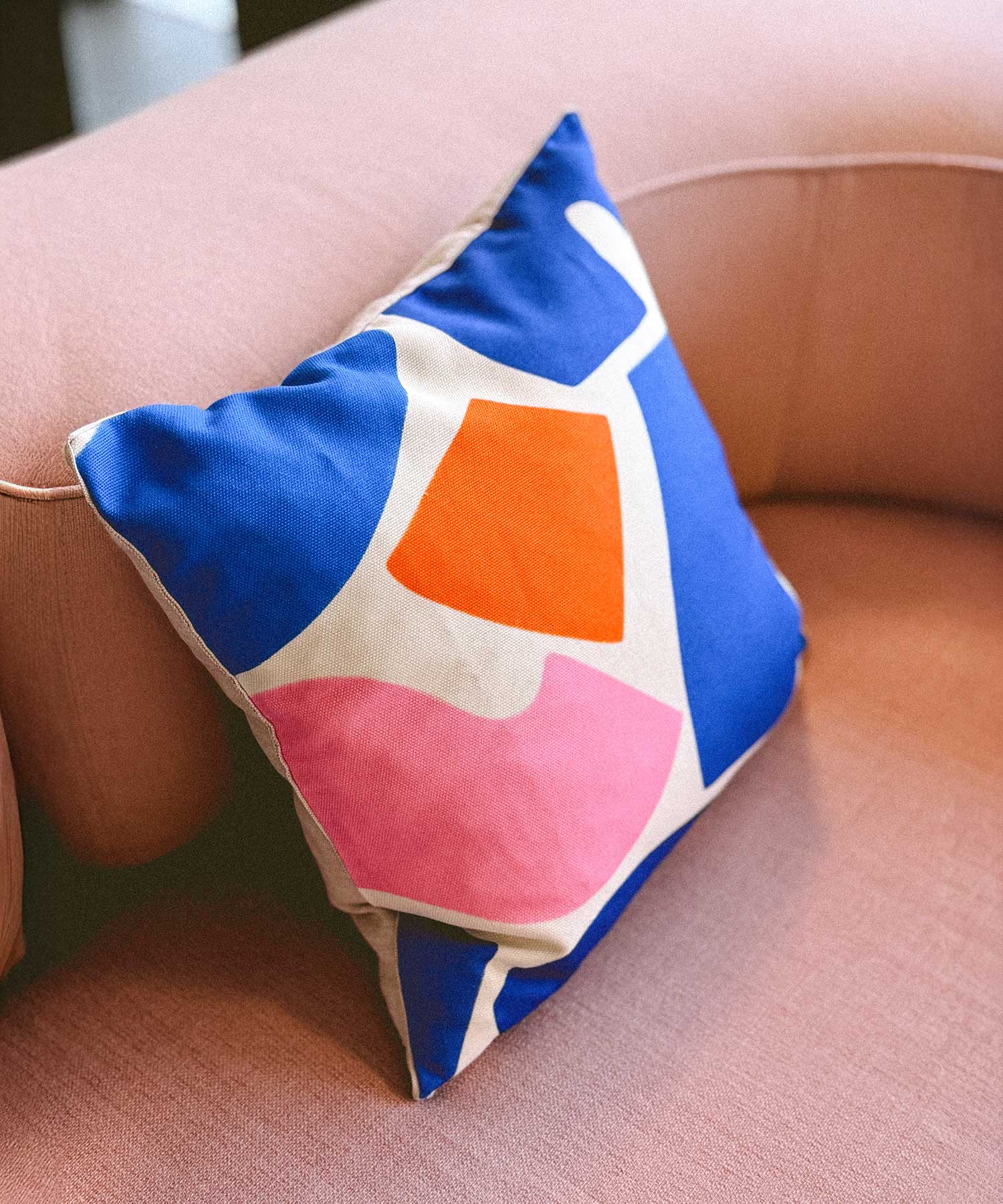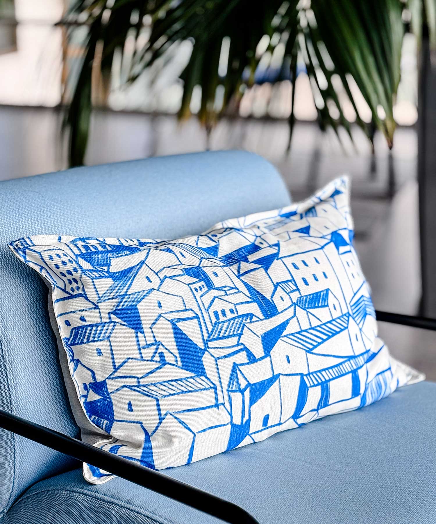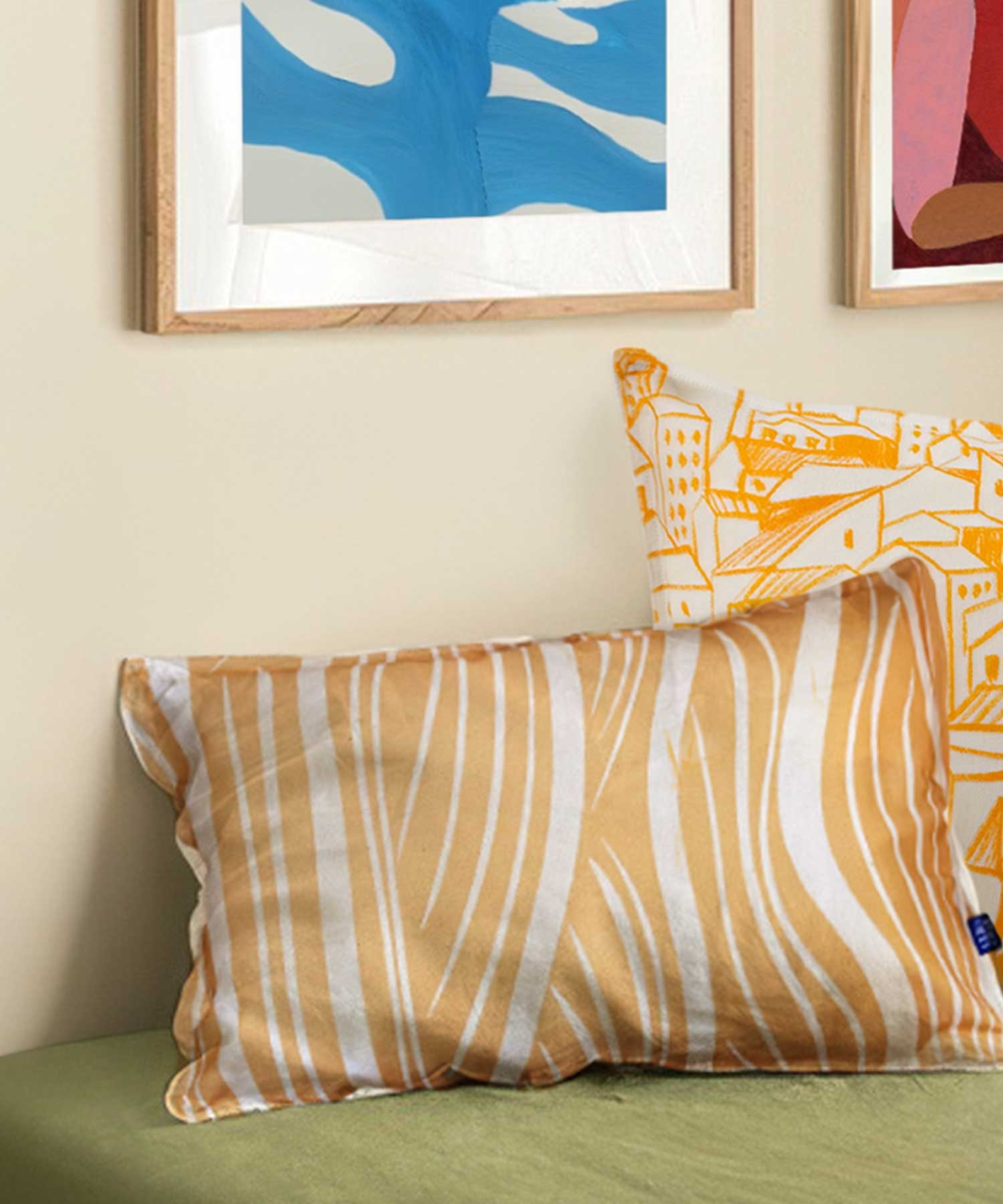 Bavlněný recyklovaný polštář s ručním blokovým tiskem Parklife